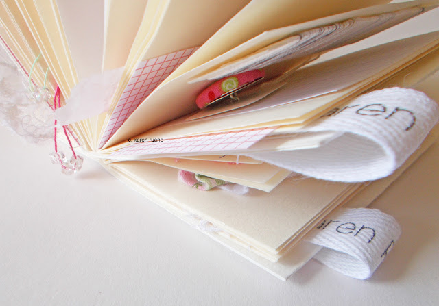 I was worried last week that as I am focusing on getting ready for France and have also been consumed by making lace cloth that I wouldn't have anything to put on here to keep you interested. What didn't occur to me though was that I was still working, finishing things and those could be shown on here. So, last night I burnt a little midnight oil and completed two little artist books. ( I also put Suffolk puffs into little packets but I figure you don't want to see plastic packets every day)
